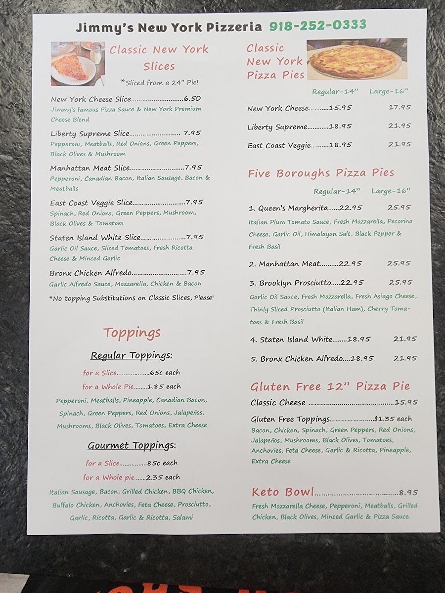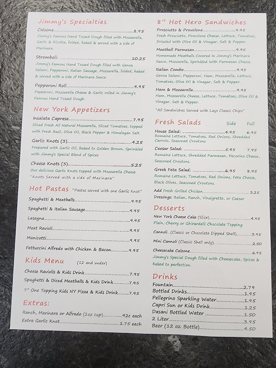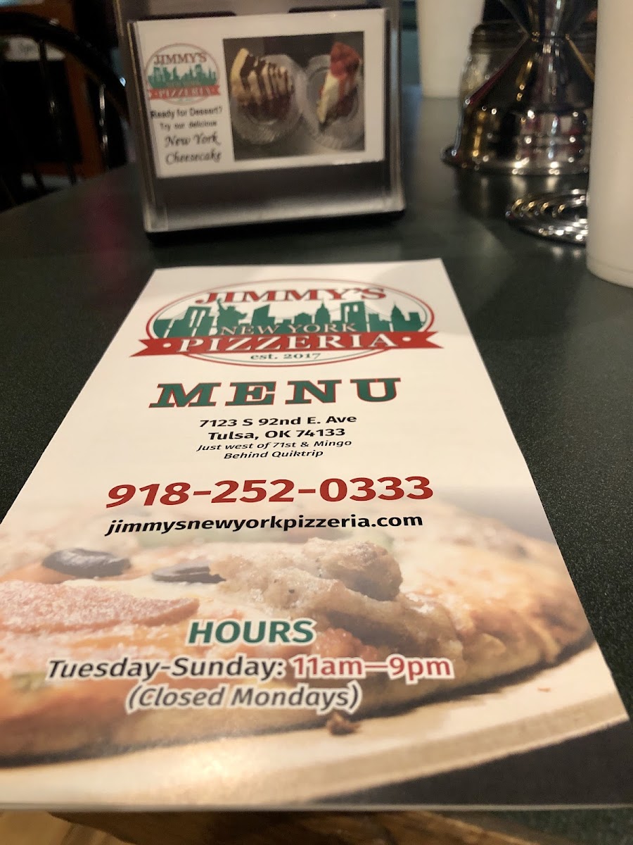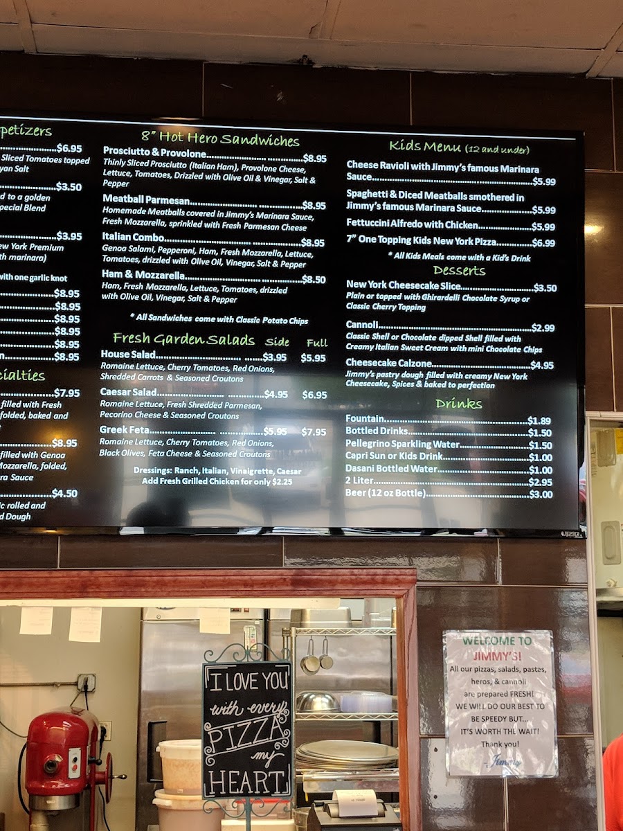 Jimmy's New York Pizzeria Broken Arrow Menu